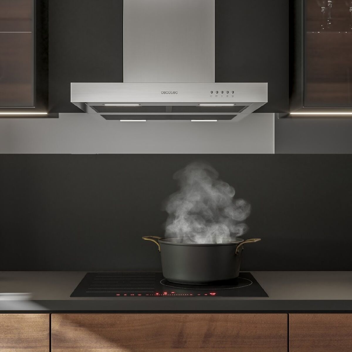The Bolero Flux TM 906500 Inox A extractor hood by Cecotec is a conventional hood designed to effectively remove smoke and odors in the kitchen thanks to its 90 cm width, a size that covers large cooking areas. Made of stainless steel, it offers great durability and resistance, while also being easy to clean, making it a practical and sturdy element for daily use. Its 165 W motor provides enough power to handle vapor and smoke extraction, reaching a suction capacity of up to 650 m³/h, ideal for keeping the air clean even during intense cooking. It offers three power levels controlled simply and directly via a mechanical button system, allowing the user to adjust the intensity as needed. It also features LED lighting that improves visibility during cooking and indicates when the device is operating. To maximize air purification efficiency, it includes two Ø176 mm carbon filters to eliminate odors and smoke, along with a five-layer aluminum grease filter that protects the structure and extends the appliance’s lifespan. Its Class A energy rating ensures optimized consumption, helping reduce electricity costs while maintaining effective performance. Overall, this extractor hood combines functionality, durability, and a clean stainless steel design to improve kitchen air quality in a practical and efficient way.