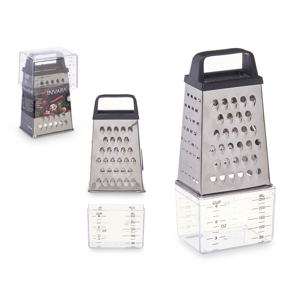 Grater with Container Kinvara Transparent Silver Stainless steel polypropylene polystyrene 9 x 6,7 x 20,5 cm (12 Units) at the best price.