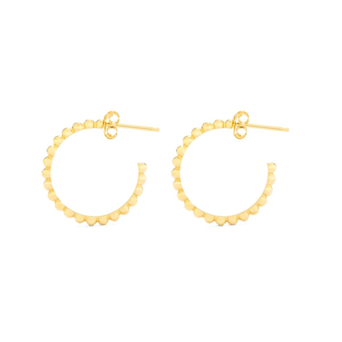The women's earrings RY000016 by Radiant are designed to add an elegant, contemporary touch to everyday feminine style, combining durable materials with modern finishes. Made from stainless steel, these earrings stand out for their resistance to wear and corrosion, making them ideal for continuous use and for those seeking low-maintenance, high-durability accessories. With a gold-tone finish, they offer a sophisticated shine that pairs easily with both formal and casual outfits. Their push-back closure ensures comfort and security, providing a firm fit for any occasion. Measuring approximately 3 cm in length, they offer a subtle yet noticeable presence, suiting both minimalist and classic styles. Specifically designed for women and influenced by contemporary trends from both China and Spain, these earrings are a versatile, timeless accessory that subtly and elegantly enhances any look. The stainless steel construction ensures they retain their original appearance longer, making them an excellent choice for practical, quality fashion jewelry.